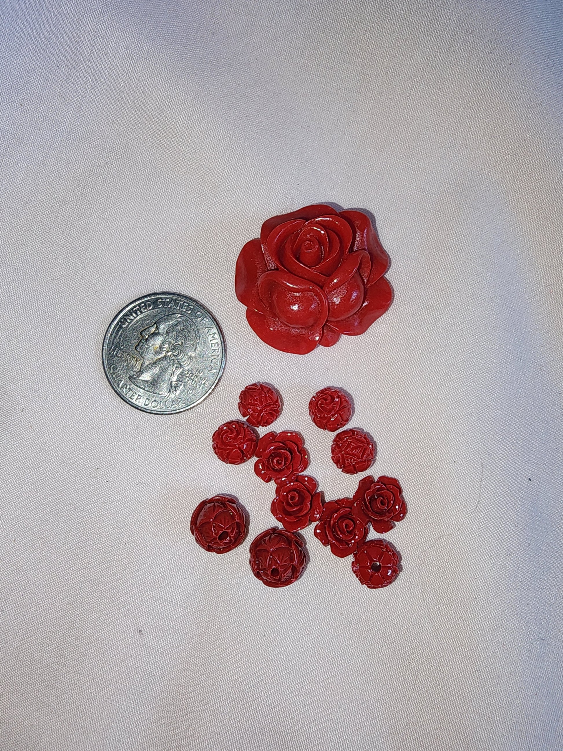 Quarter for scale; Beads, Acrylic, Red