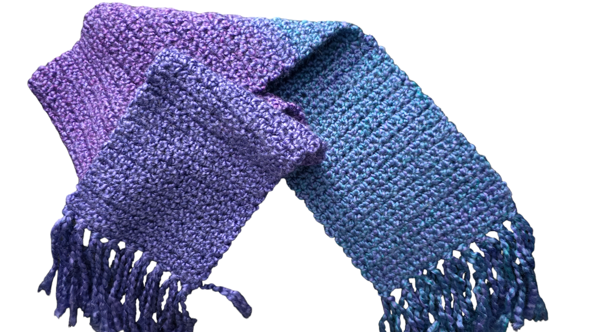 Crocheted Scarf: Purple & Blue Blend - Lion's Brand Homespun: Petunia Stripes
