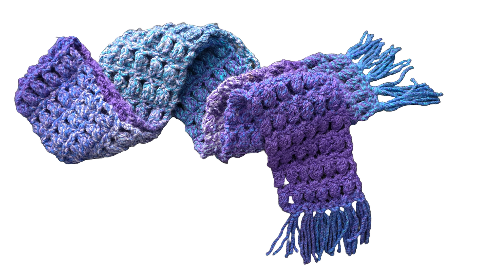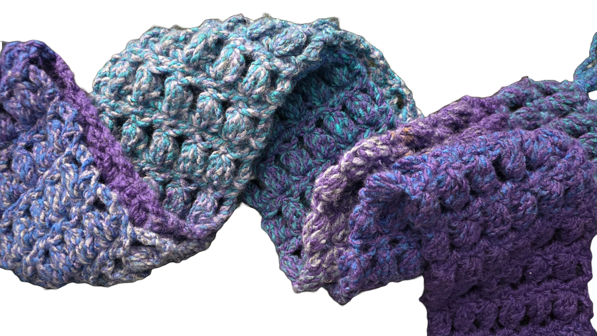 Crocheted Scarf: Purple, Blue, & Teal Blend - Premier, Puzzle: Hangman