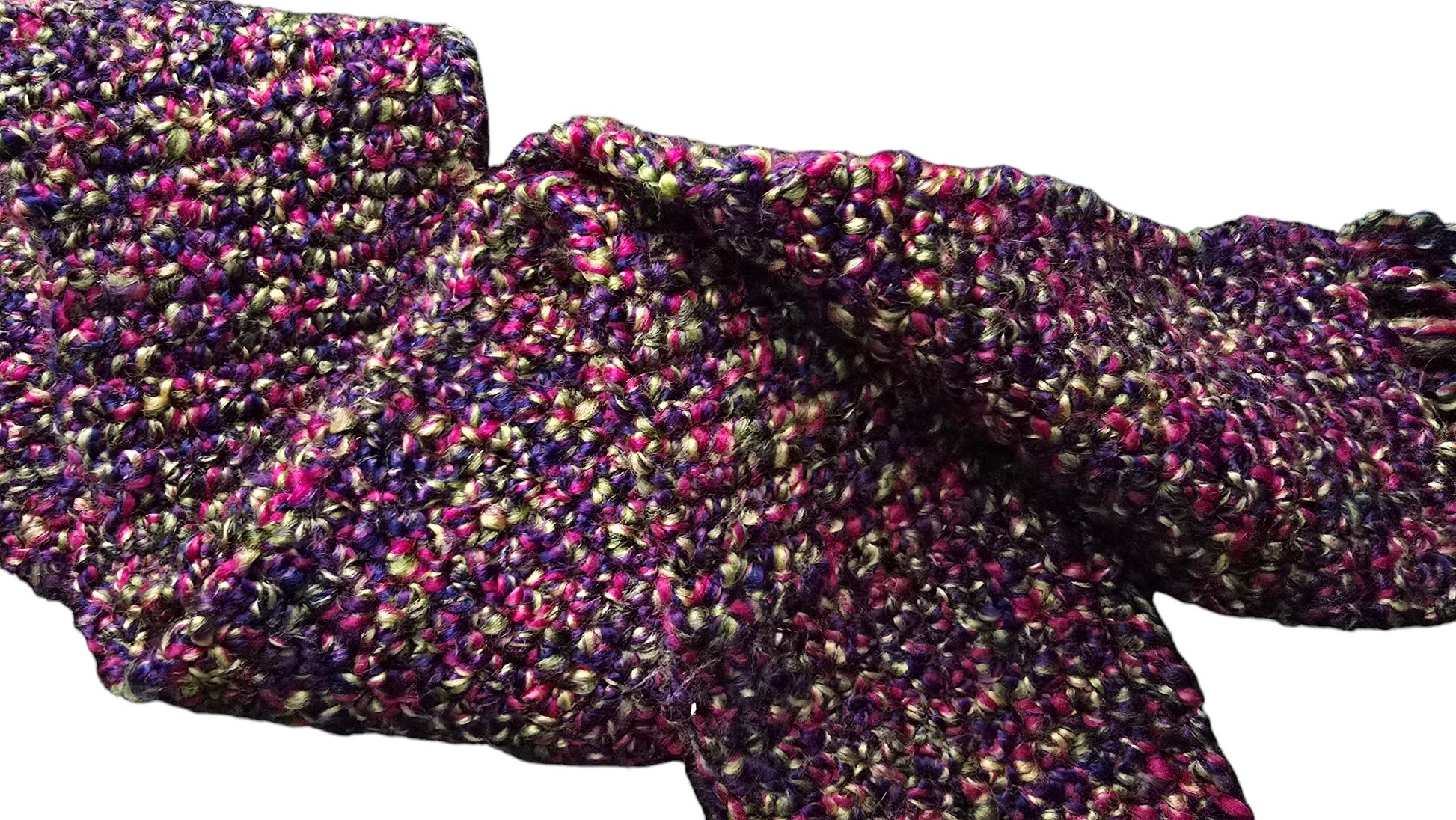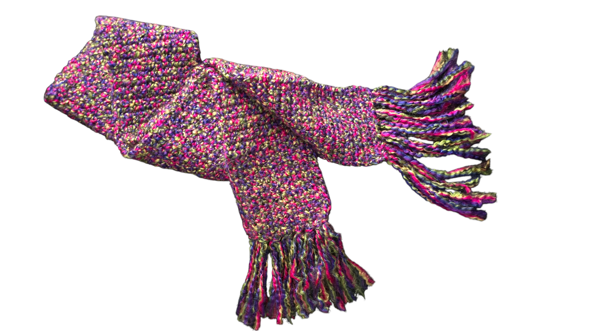 Crocheted Scarf: Purple, Pink, Green, & Yellow Blend - Lions Brand, Homespun: Vineyard