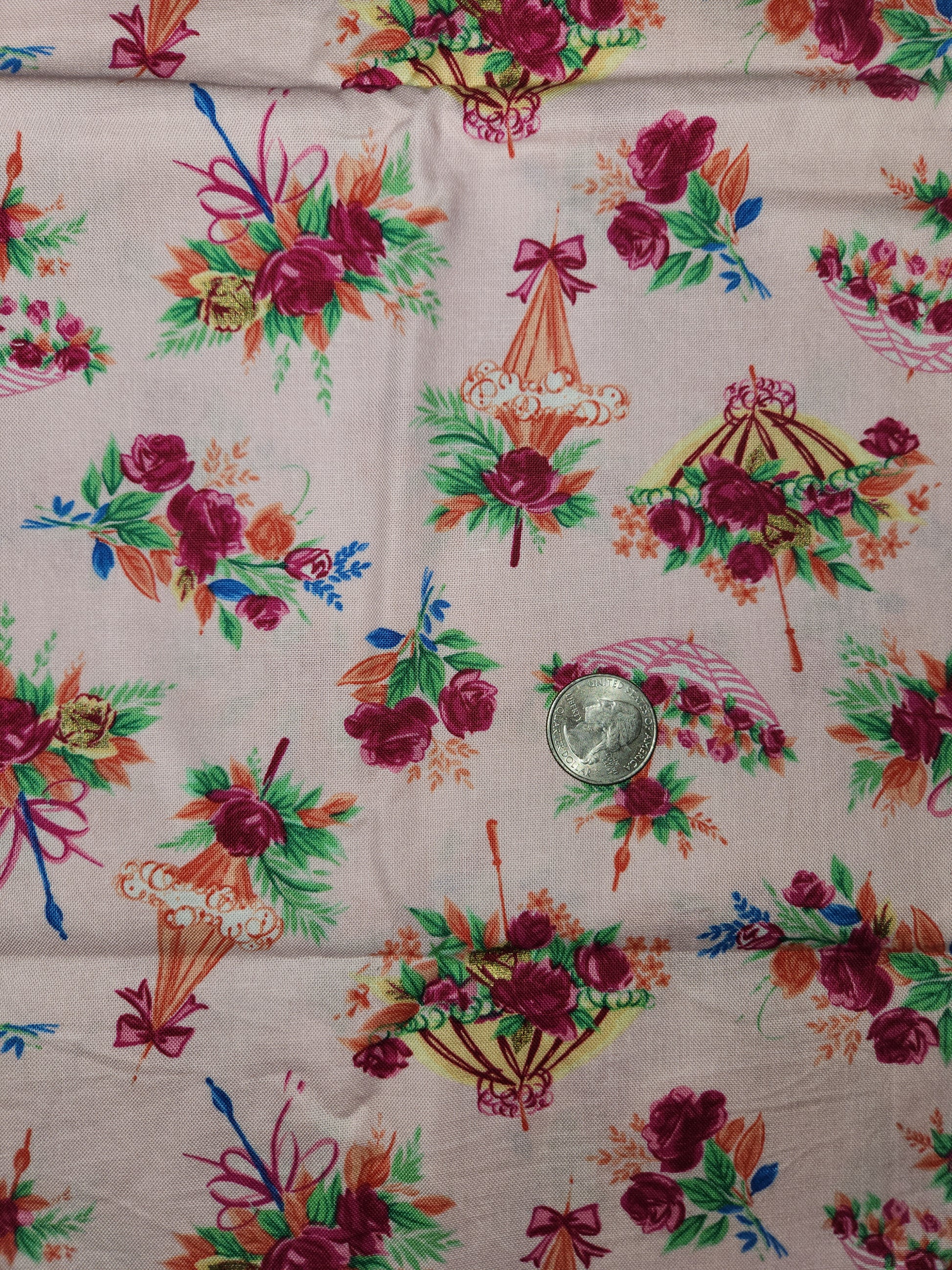 Pattern: Floral Bouquets and Umbrellas on Light Pink