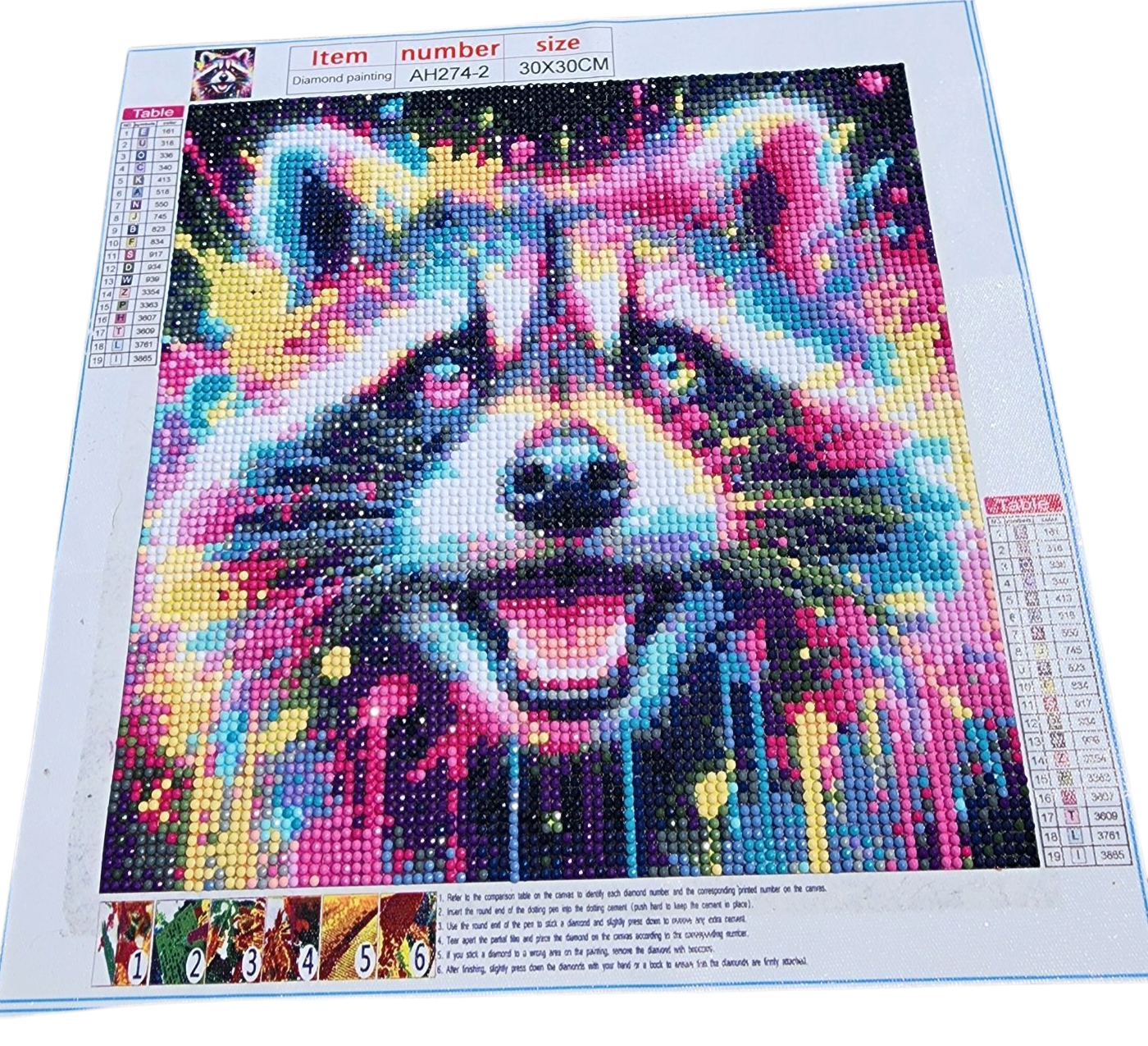Finished Diamond Painting - Neon Paint Splatter, Racoon