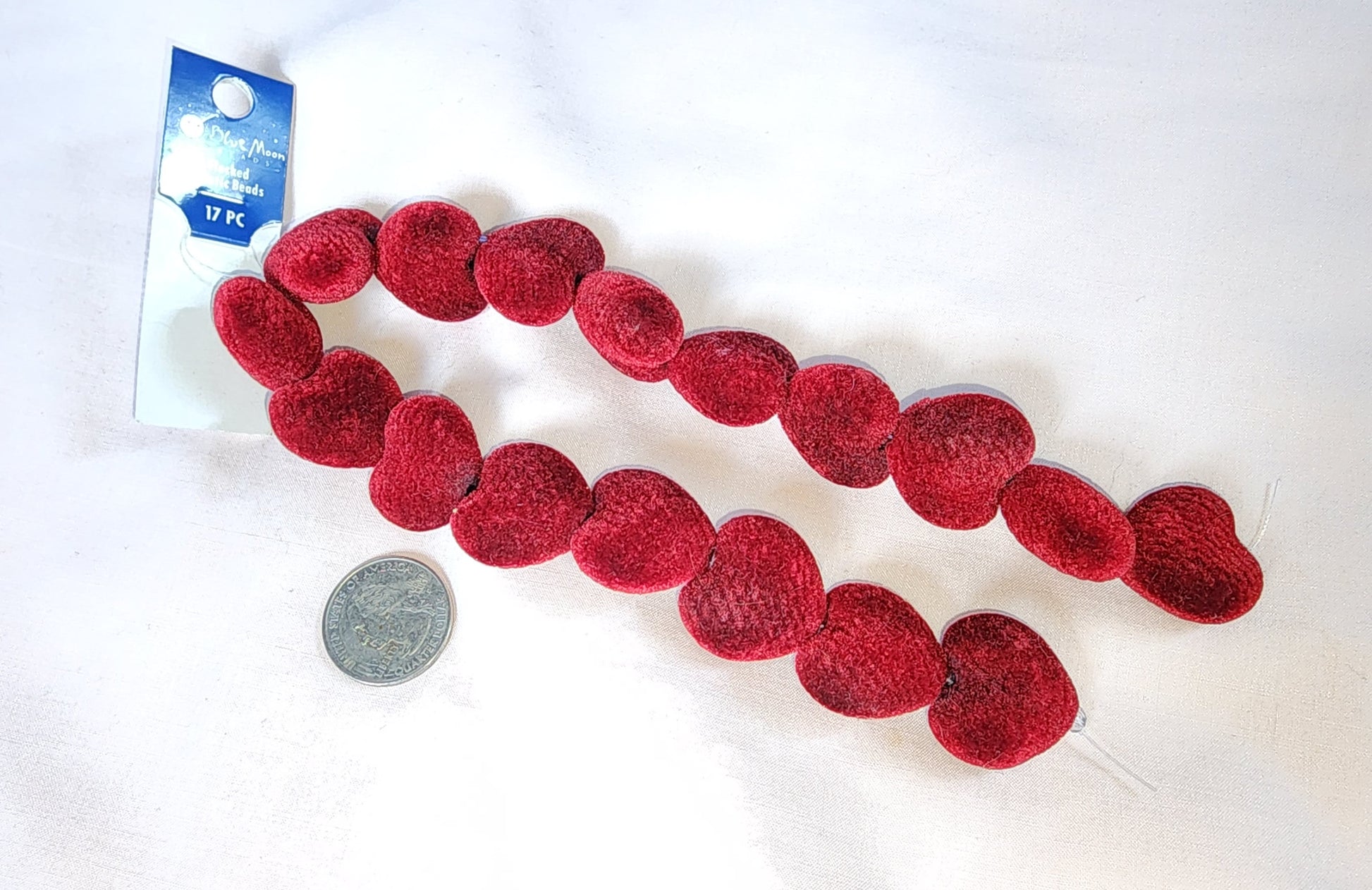 Faux velevet, flocked beads. 2 strands, 17 pcs total.